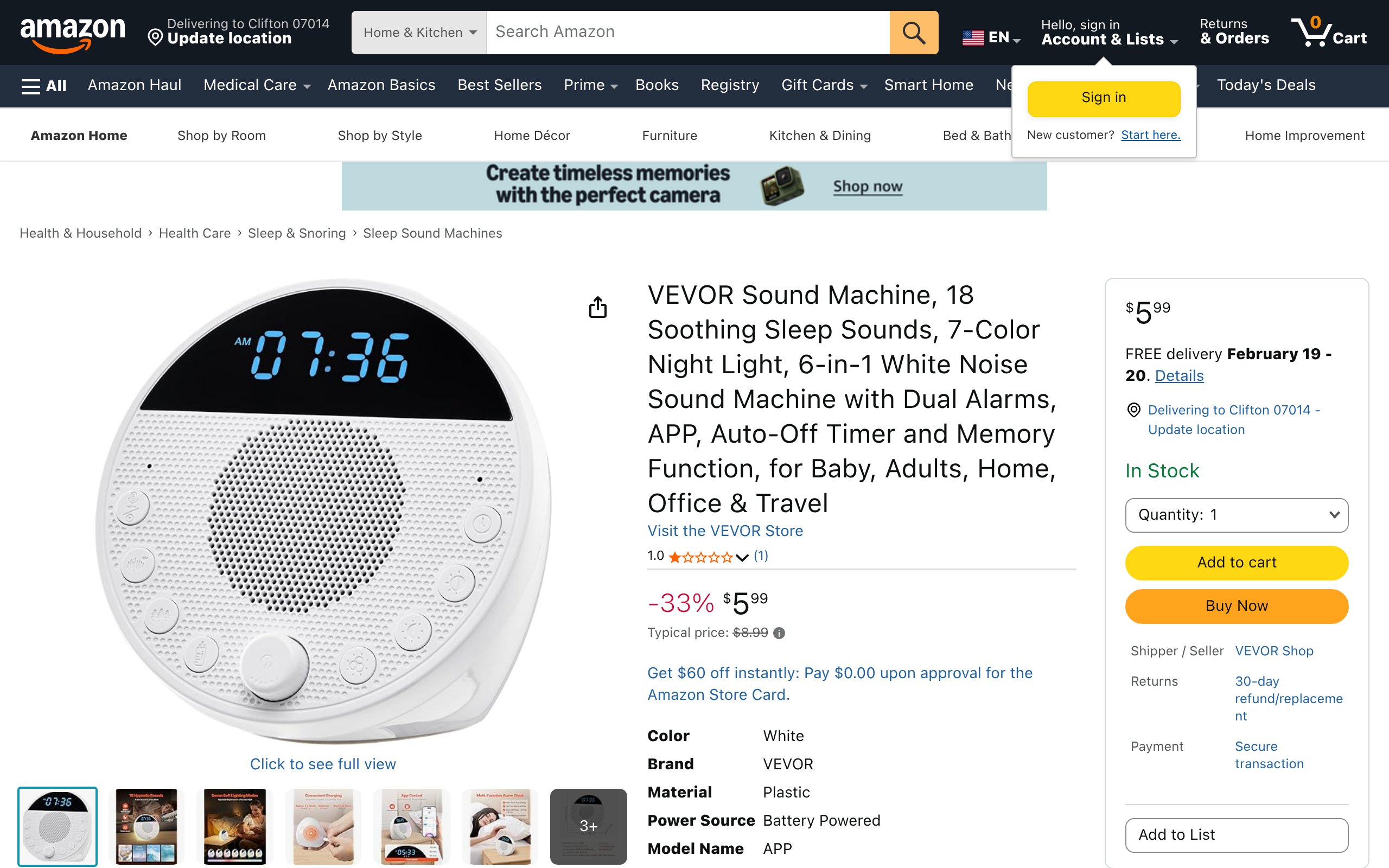 Amazon Coupons Deals USA Vevor APP 6-in-1 Noise 18 Soothing Sleep Sound Machine w/ 7-Color Light $5.99 February 14, 2026