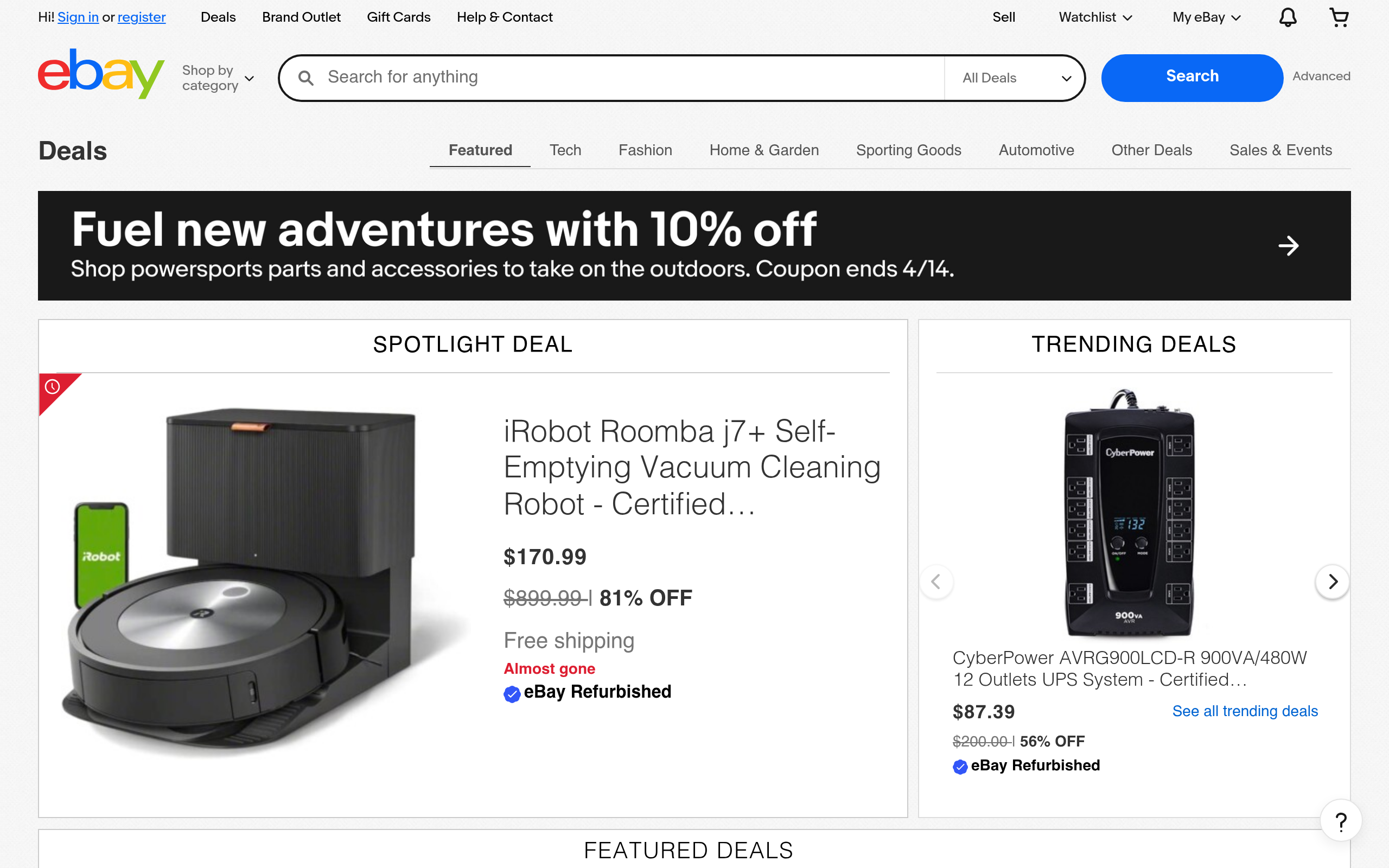 Deals Ebay USA eBay Daily Deals: Up to 81% Off Refurbished iRobot Robot Vacuum, Sony Bluetooth Headphones, Garmin GPS Smartwatch and more April 9, 2026