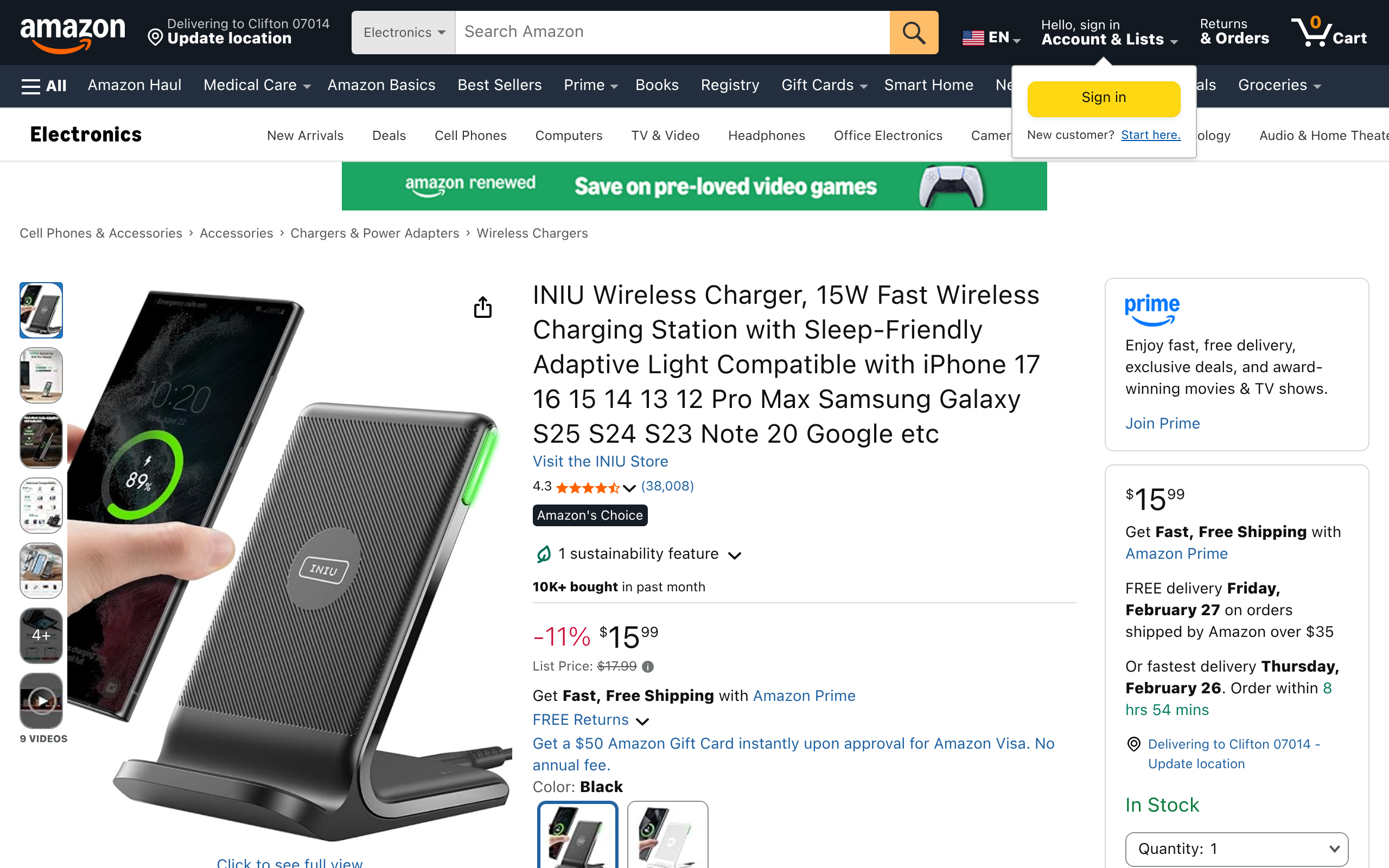 Amazon Coupons Deals USA INIU 15W Fast Qi Certified Wireless Charging Station $7.94 February 22, 2026