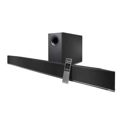 | Upgrade to premium audio with VIZIO’s 42″ 2.1 Home Theater Sound Bar with Wireless Subwoofer. Designed to complement any medium to large-sized HDTV, this sound bar connects easily to your TV with just one cable. The wireless subwoofer adds deep, room shaking bass to your room without the need to run any extra wires. Built-in Bluetooth® allows you to wirelessly stream music from a smartphone or tablet, while Dolby Digital and DTS Digital Surround audio technologies turn movies, TV and games into an immersive audio experience. Rated at up to 101 dB with less than 1% Total Harmonic Distortion, the S4221w is a serious audio upgrade you can hear and feel. *Sound Pressure Level measured using pink noise at 1 meter, C-weighted. | |