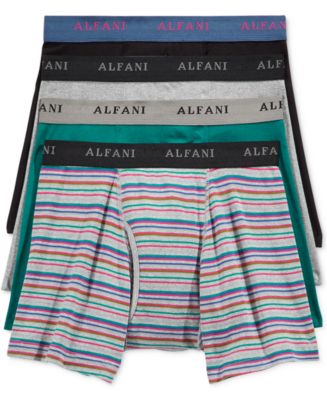 Stock up on comfort and style with this 4 pack of boxer briefs from Alfani, with form-fitting stretch fabric and a colorful striped pattern.