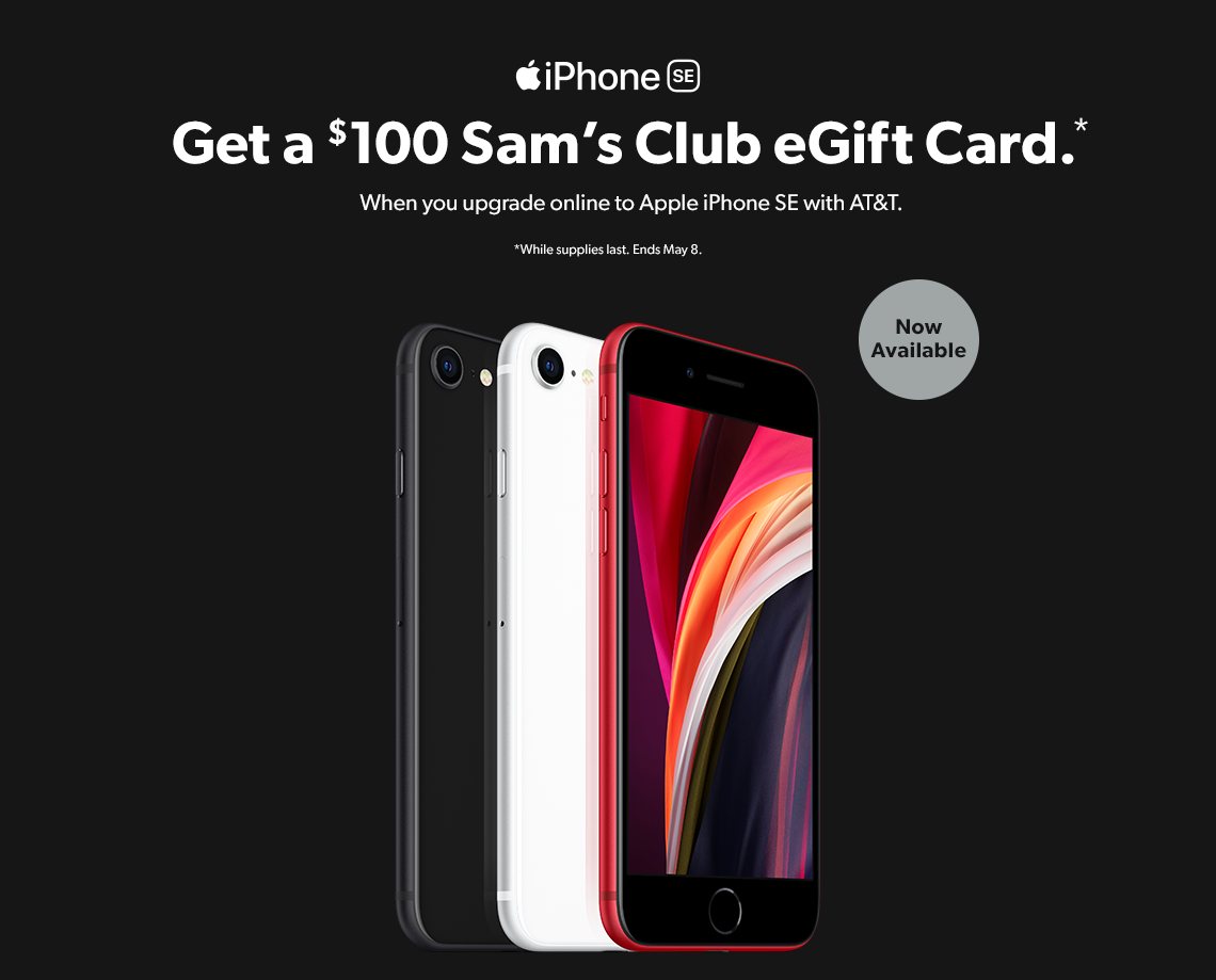 Order now: $100 Sam’s Club eGift Card when you upgrade online to Apple iPhone SE from samsclub.com