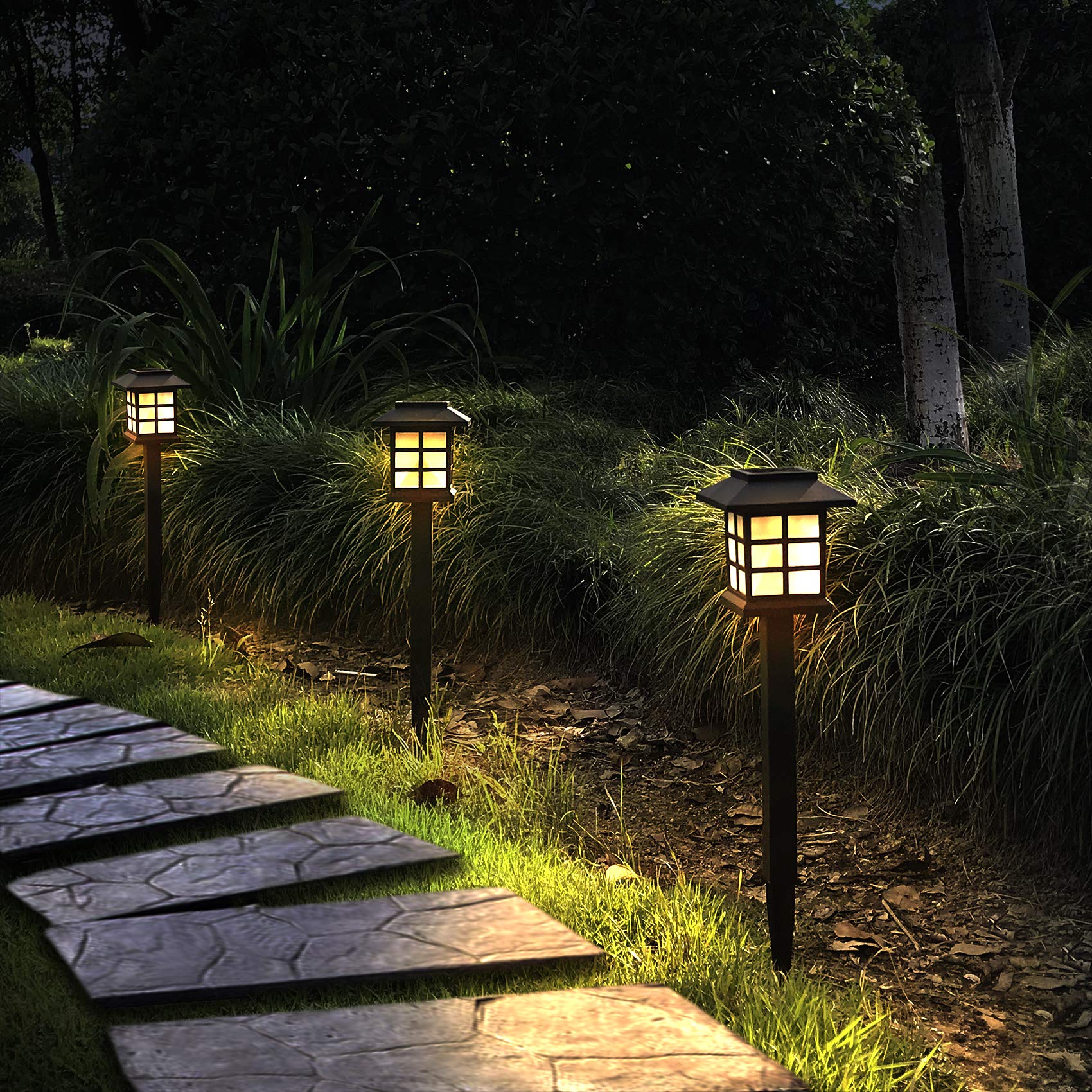 【Waterproof】 These high quality outdoor solar lights are characterized by their durability. They are made of highly resistant plastic with an IP44 waterproof rating to meet a variety of outdoor path environments and are fully weatherproof and impact resistant. They are safe to use even in bad weather, rain or even in the snow.