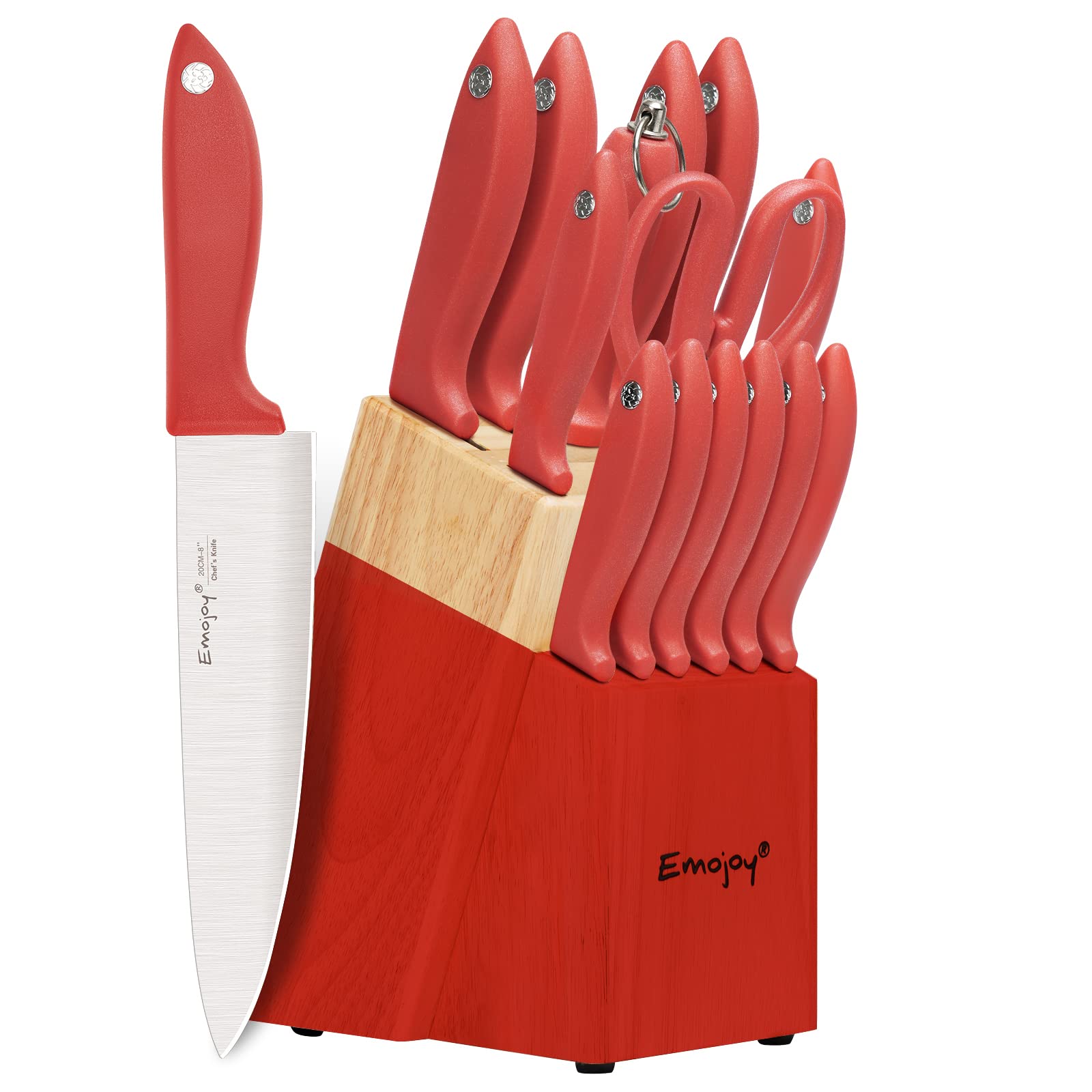 Order now: 15-Pc Emojoy Kitchen Knife Set w/ Wooden Block (Red) for $20.10 from amazon.com