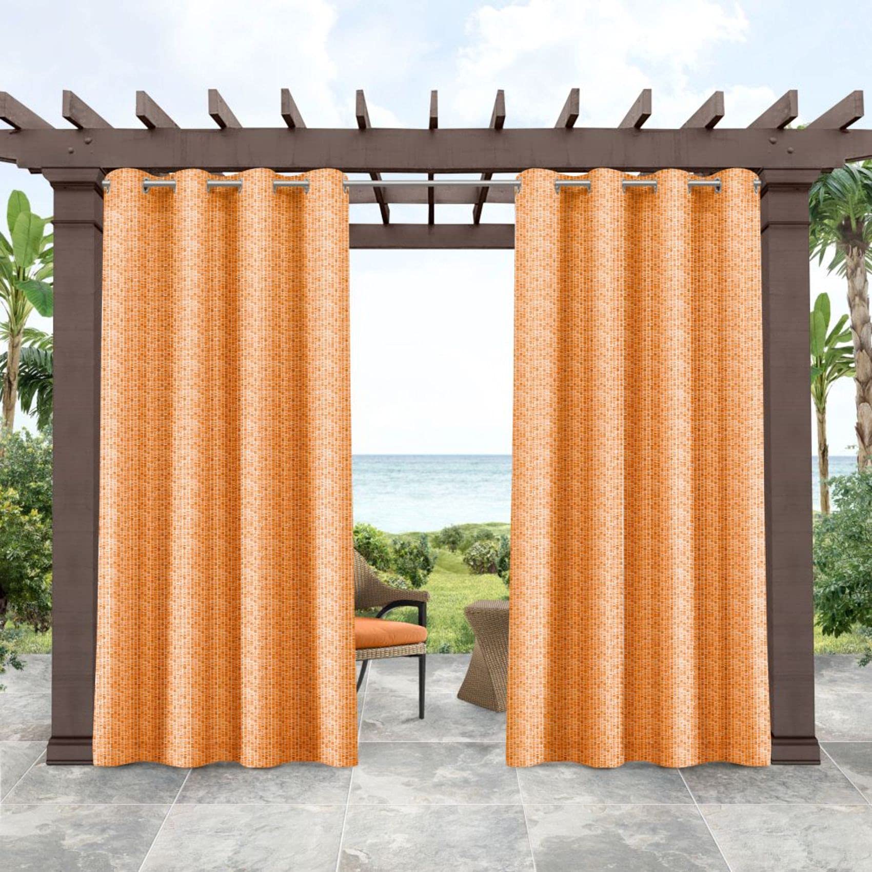 INDOOR/OUTDOOR: The Mosaic light filtering curtain panels are made from water repellent fabric that is perfect for indoor and outdoor spaces.
