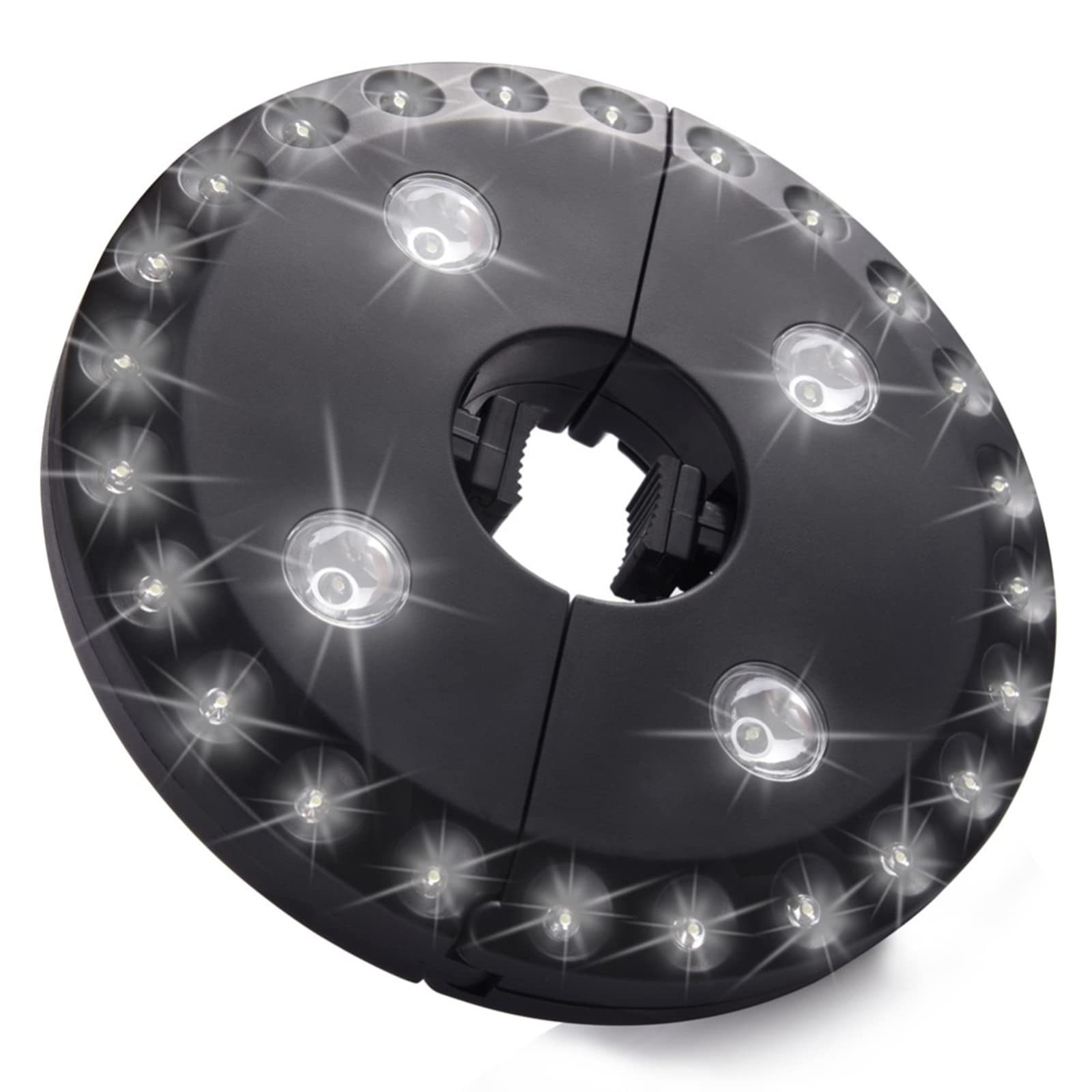 【Multiple Functions Application】The parasol light has 28 white LED lights so it will easily light up the area under and around the patio umbrella, turn night time darkness into a brightly lit backyard under the night s sky. Suitable for camping, swimming, BBQ, playing CARDS, or lying on your leisure chair in the evening with your families or friends, and more