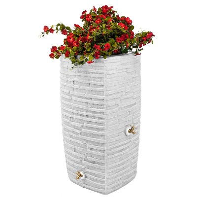 The Impressions rain barrel collection reinvents how you harvest rain water. This 50-gallon Riverwalk design is sturdy and one of the most eye-catching rain barrels on the market. Its unique, slate rock surface creates a natural texture that shows how this barrel can be more artful in aesthetics instead of an obvious utility product. The top also includes the Good Ideas original, integrated overflow channel. This channel automatically diverts all overflow water to the front of the barrel and keeps your foundation from flooding. The large opening, which can be used for 2 x 3 or 3 x 4 downspouts, is covered with a soft, fine mesh, plastic screen. This screen keeps out heavy debris and insects for piece of mind. Also included with the barrel are two, offset spigot locations. Now you can use a five-gallon bucket or hose simultaneously without issue. Or use the second spigot as an overflow into a second barrel. Who knew you could have so many features in a rain barrel? Impress your friends and neighbors with the Impressions Riverwalk 50-Gallon Rain Saver.