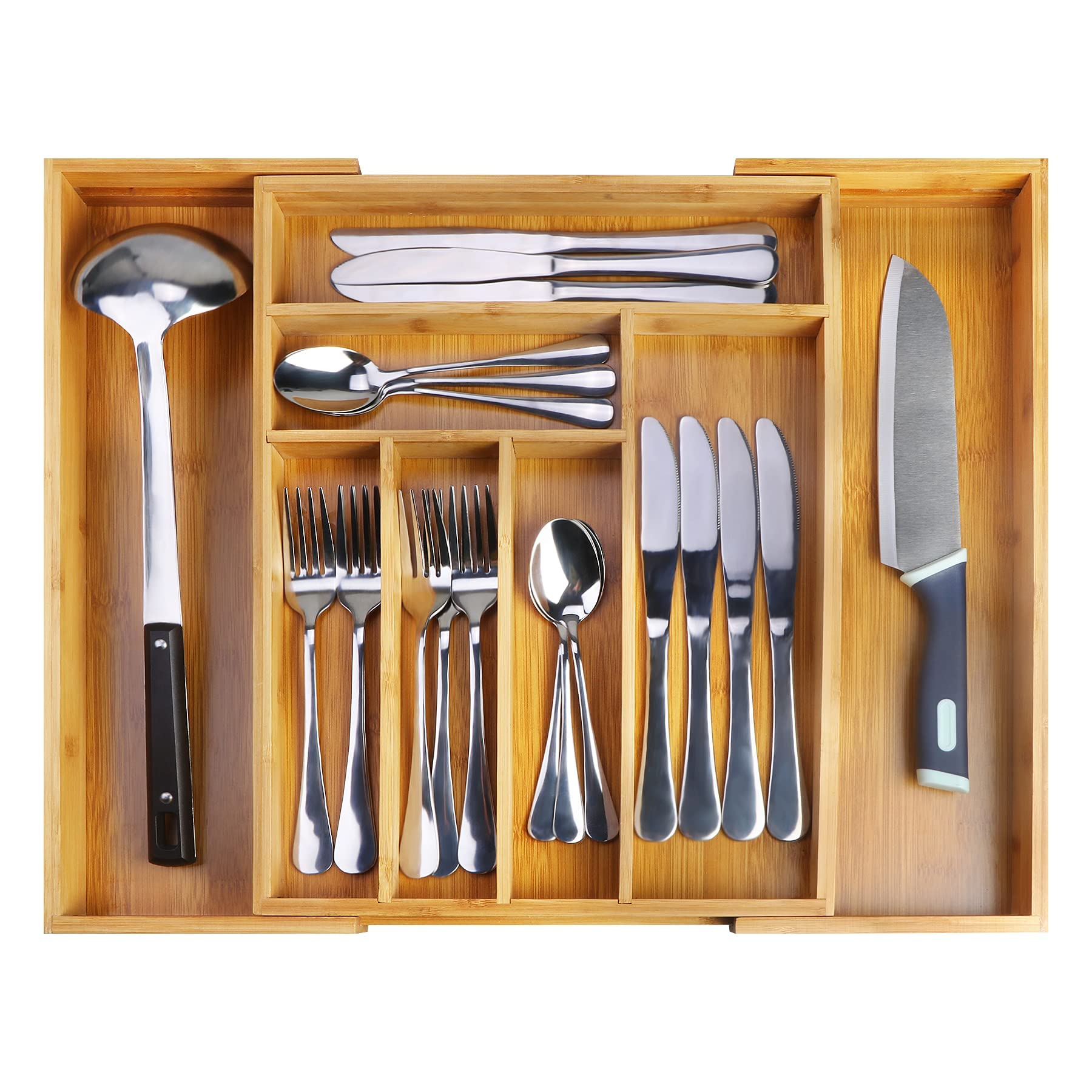 【Organic Bamboo】The silverware tray for drawer make of solid bamboo,durable to withstand daily use. Bamboo drawer receives box is an absolute must in any kitchen.