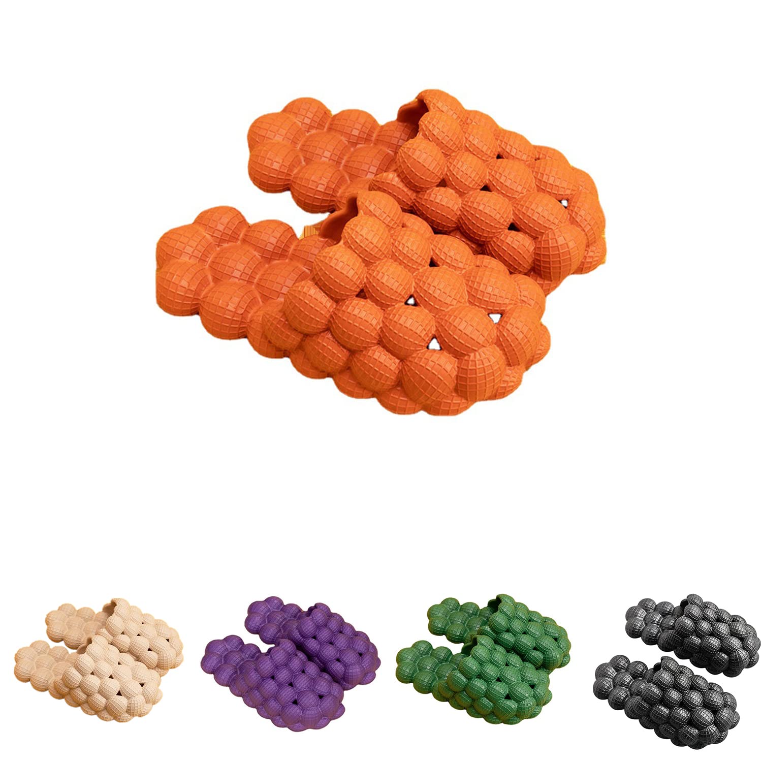 【Unique design】these bubble slippers with bubble design, imitating lychee grapes and other fruits, curved convex sole, slightly inclined toe 15 °, can relieve pressure, balance the friction, ergonomic, walking freely.