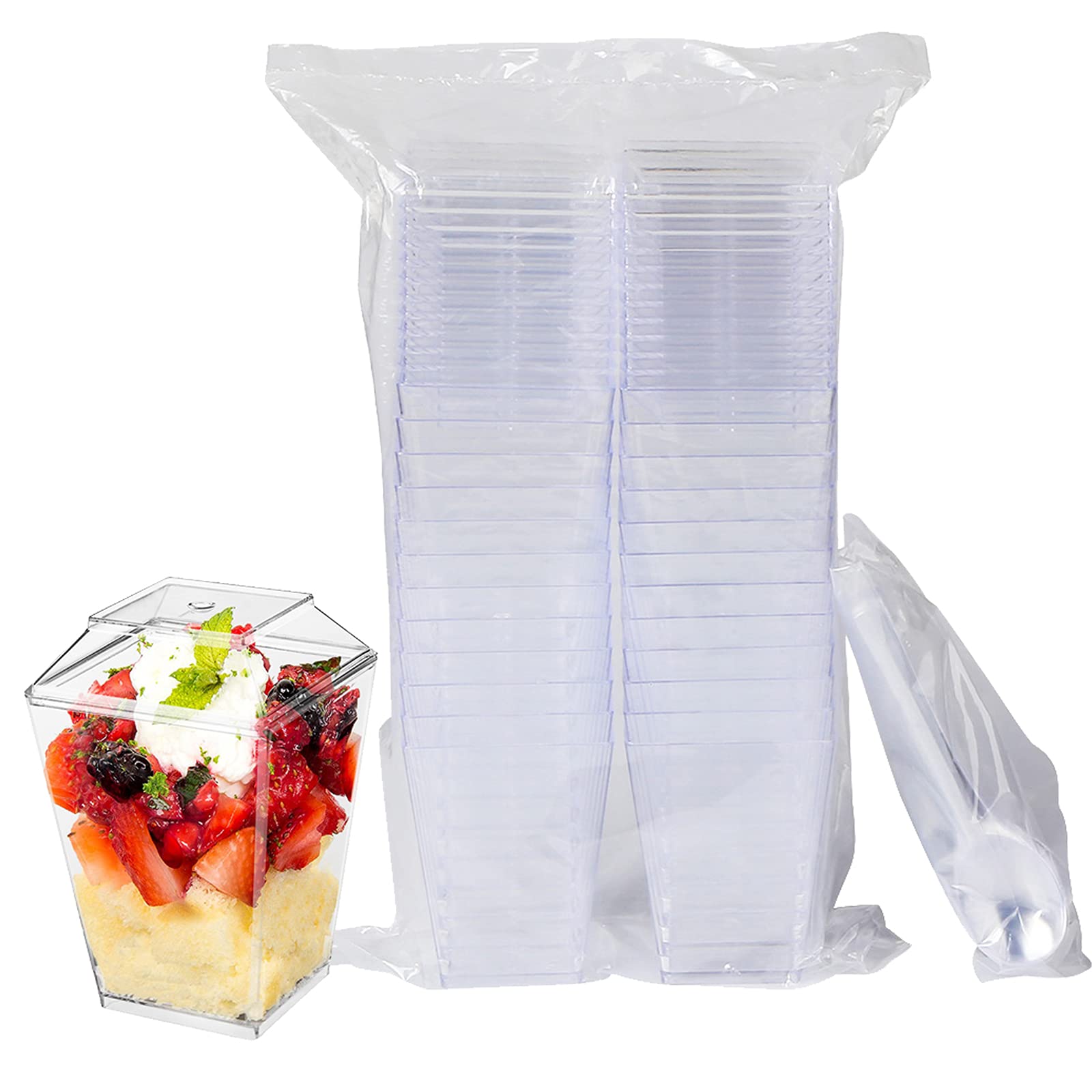 Order now: 5oz Dessert Cups, 60 Pack Square Clear Plastic Appetizer Cups with Lids and Spoons from amazon.com