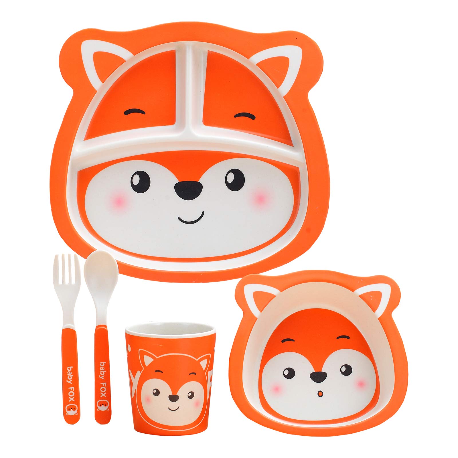 👶【Material】These tableware sets are made of bamboo fiber materials. Bamboo fiber is light, so our 5-piece tableware sets is easy to use for small hands.