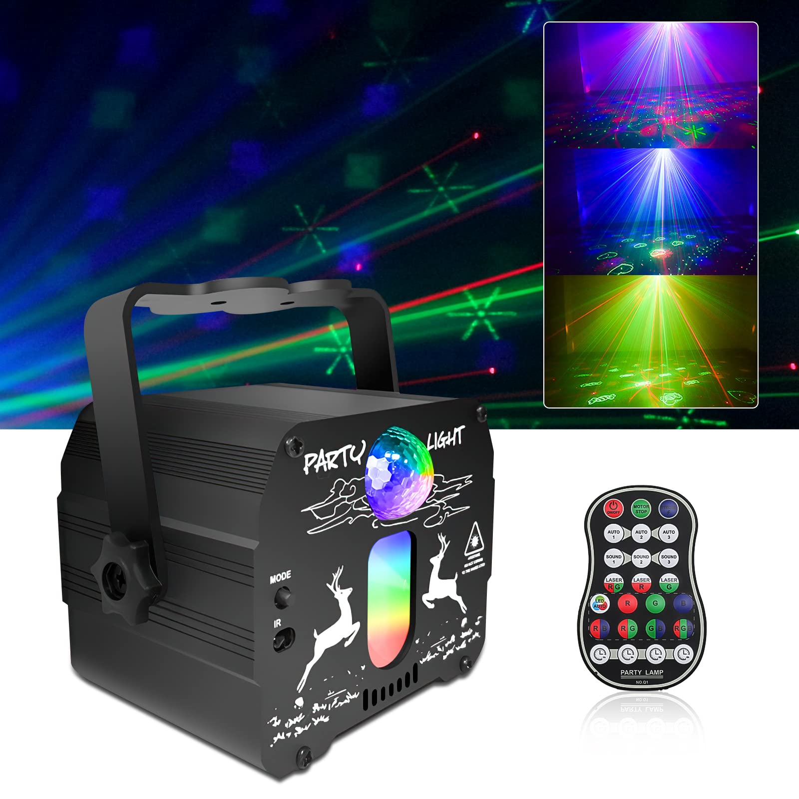 ♫【New-designed Remote Control】Just chose the disco lighting modes you like with the functional remote. Red/Green laser lights, Red/Green/Blue LED lighting or the mixing effects, you can also set the timing for your favorite party lighting mode.Two batteries available in the RC.
