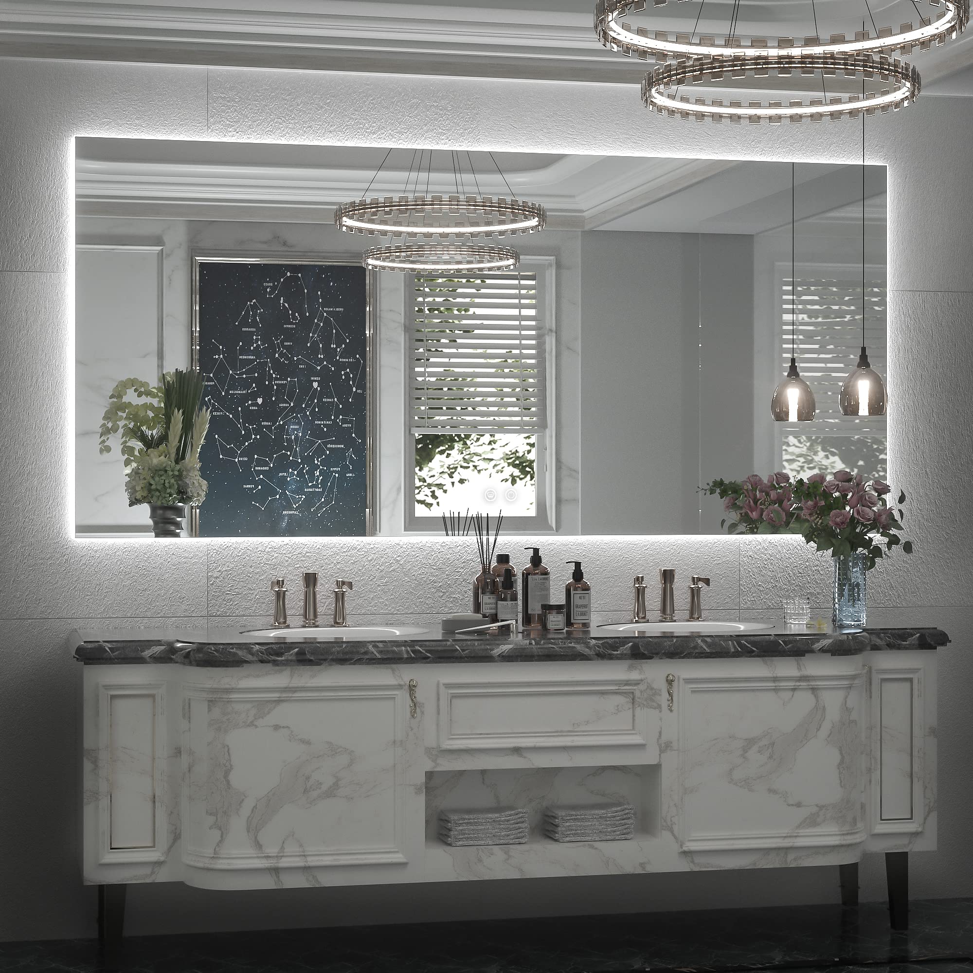 Bathroom Decor Birthday Gift Housewarming Gift Wedding Gift Smart Touch Switch: The backlit mirror light is dimmable through touching the button. Simply touch the button for 3 seconds to change from normal bright to the brightest. Both switches have the memory function. The next time you open the mirror, it will be in the same status as it was closed.