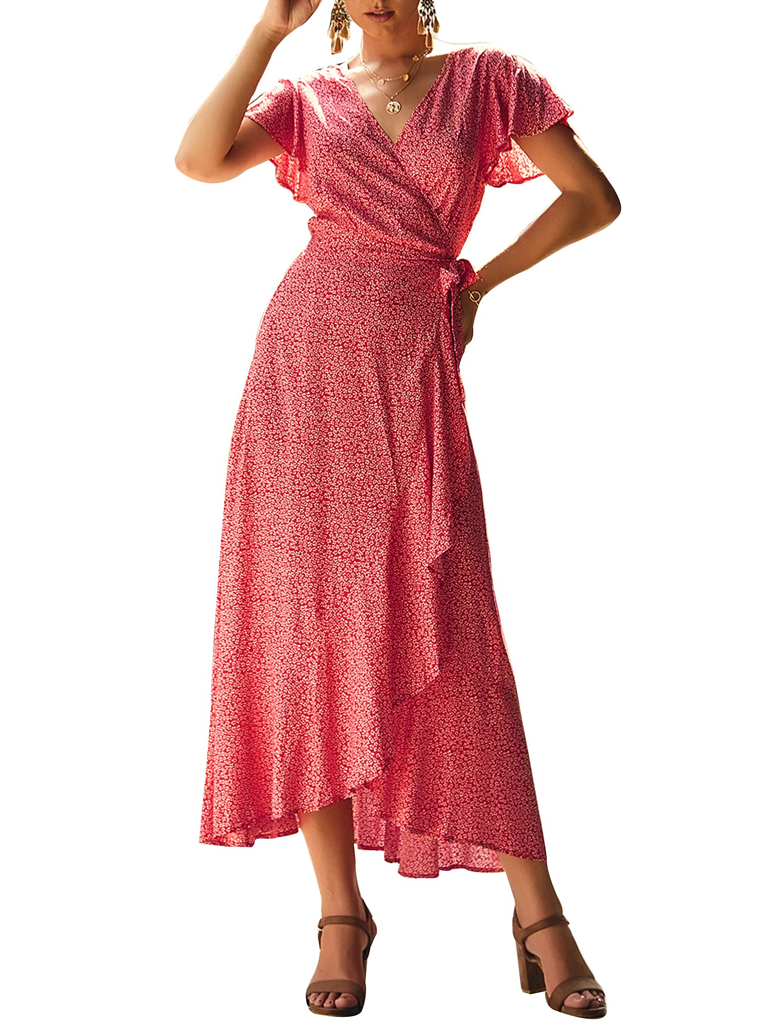 Order now: 83% OFF Women’s Boho V Neck Ruffle Floral Wrap Maxi Dress Only $4.99 (Reg $23.99) from amazon.com