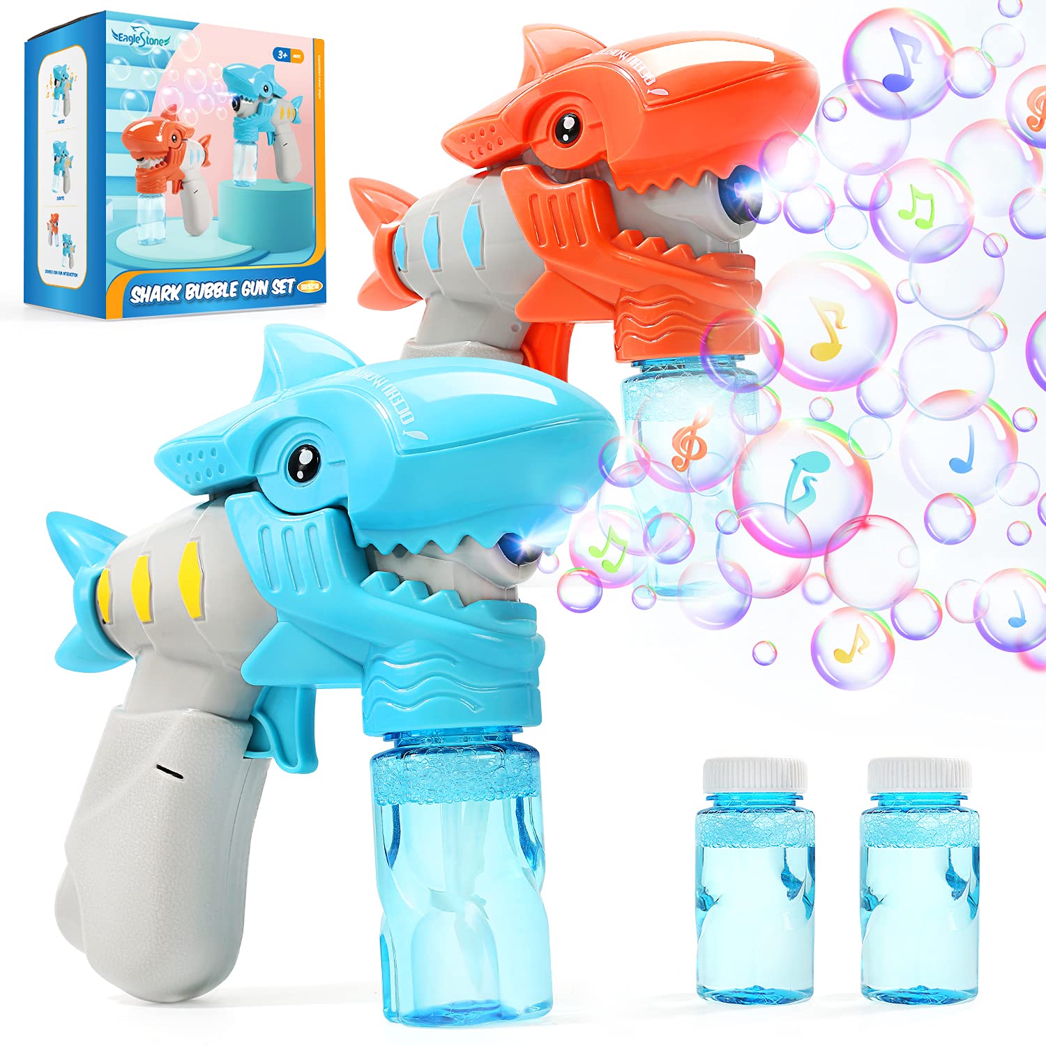 SUPER VALUE PACK: Our Bubble Guns Kit Includes Blue Shark and Orange Shark Bubble Guns, Comes with 4 Bottles of 54ml Bubble Solutions,and fires 800+ Bubbles Per Minute. The more bubbles our bubble machine blows, the more fun your bubble fan can enjoy!