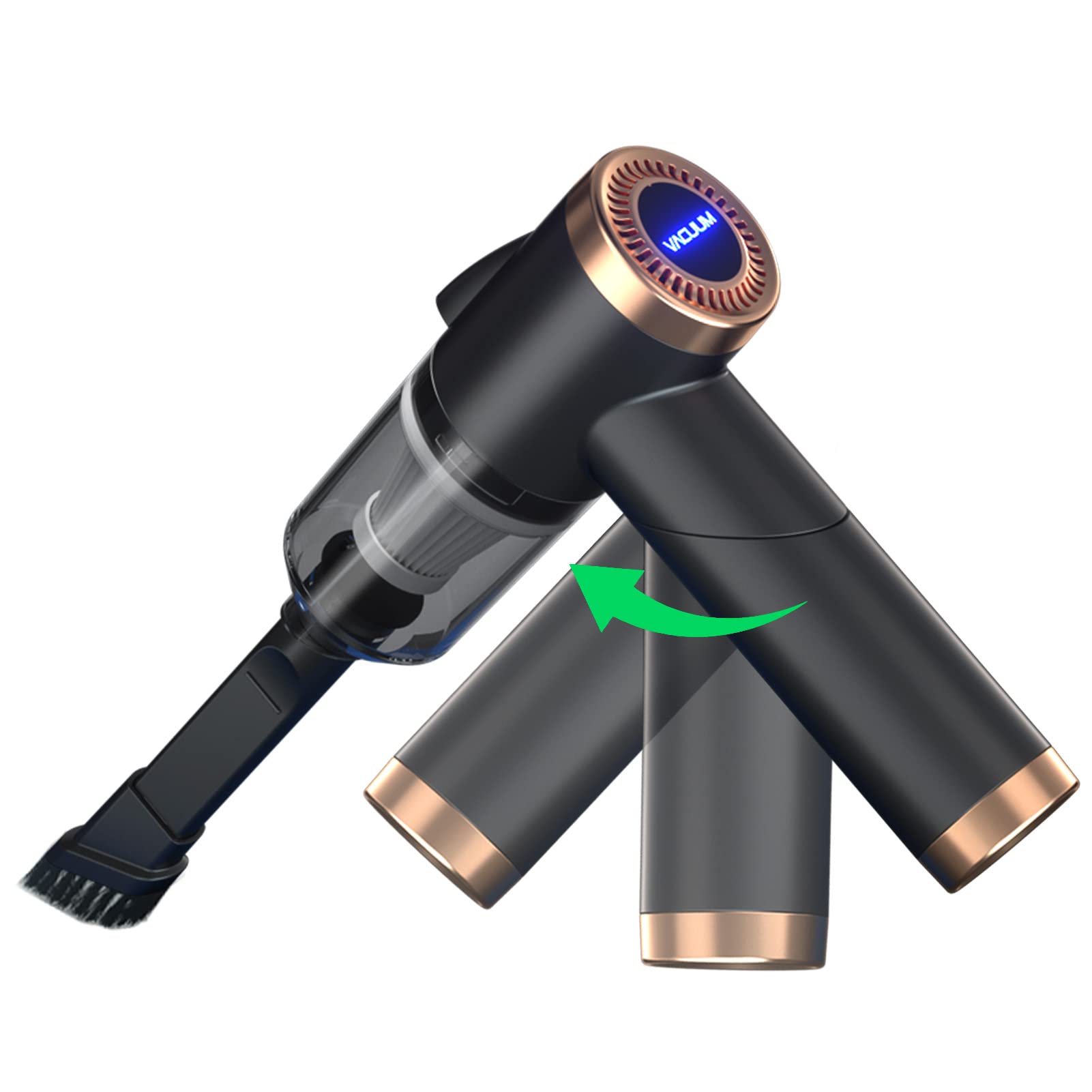 SUCTION POWER: Built-in 4000 mAh battery, 120W powerful motor. It can provide a suction power of 9000Pa for up to half an hour. This is already very strong suction in mini vacuum.