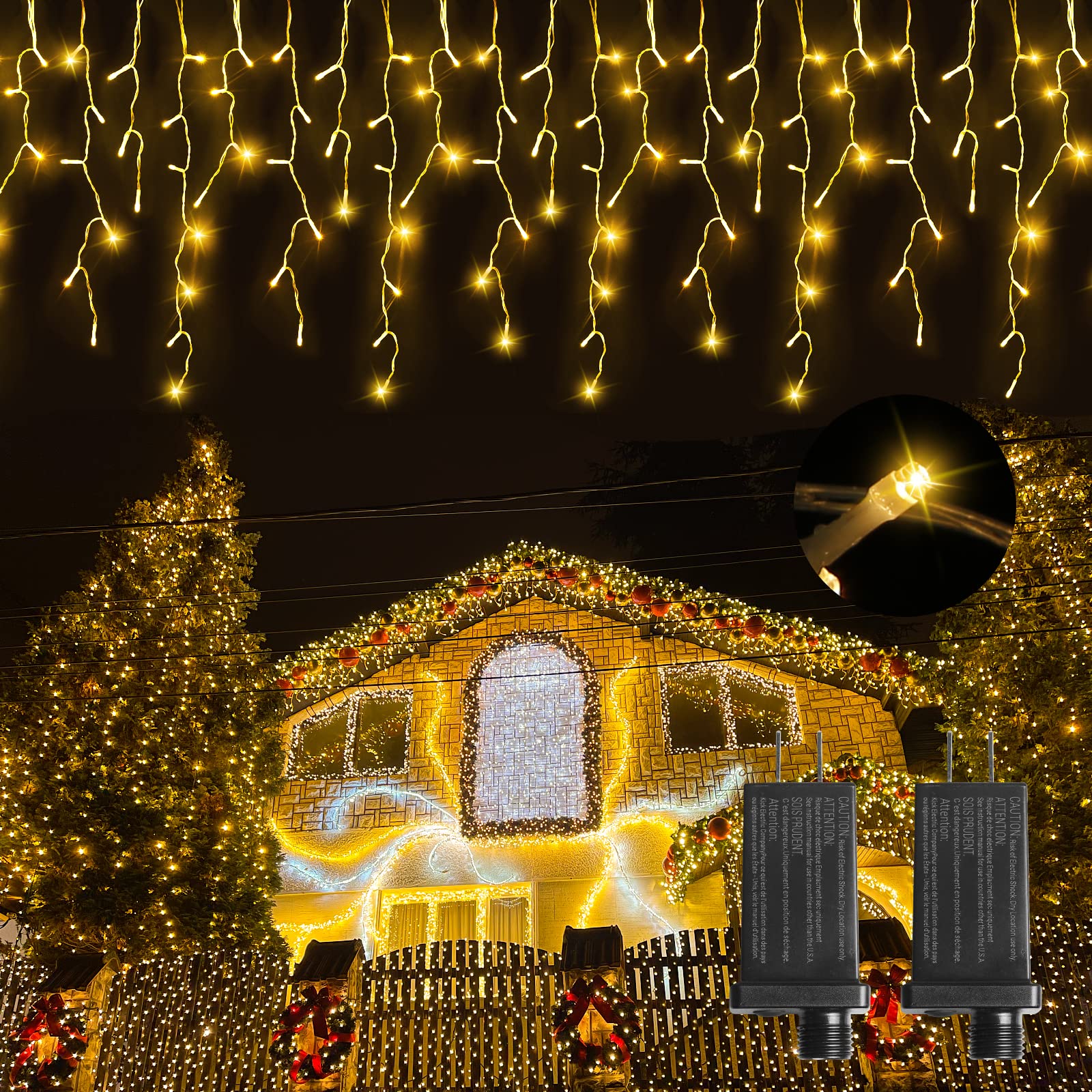 Indoor & Outdoor Decoration:The outdoor christmas lights icicle use more energy-saving LED chips(life span more than 50,000 hours), premium copper as lead wire and soft PVC wrapping material, waterproof and sturdy. Compared with traditional Christmas lights, it can save energy by 90%.Tips: When outdoor icicle christmas lights for house is used in outdoors, please make waterproof protection for the plug.