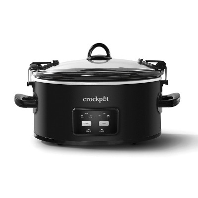 Whether you’re feeding friends and family at home, or taking your meal on the go or to an event, the Crockpot™ 6-Quart Cook & Carry Programmable Slow Cooker makes sharing a home-cooked meal with loved ones easy and effortless. The Cook & Carry travel-proof locking lid provides a tight seal to prevent leaks and spills, for no mess on the go, and convenient handles make it easy to carry and take your favorite slow cooked meals anywhere. With a one-touch control, this Crockpot slow cooker offers 4 preprogrammed settings that allow you to cook your food at the ideal time and temperature. Once cook time is complete, the temperature automatically switches to the warm setting to prevent overcooking, and to keep your food at serving temperature. The 6-quart capacity feeds 7+ people, making it perfect for family meals. When you’re finished slow cooking, both the lid and the stoneware can be placed in the dishwasher for easy cleanup.
