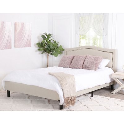 Order now: Ellie Cream Linen Upholstered Queen Platform Bed, Curved $199.88 from samsclub.com