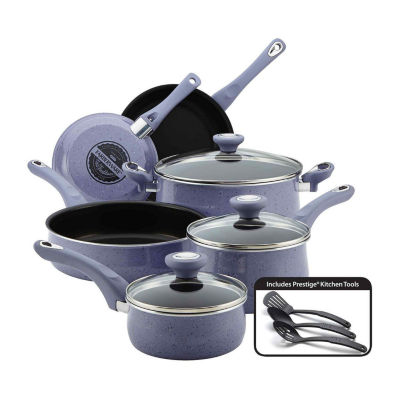 Add refreshing color to the kitchen with the Farberware nonstick 12-piece cookware set. This high-performance aluminum cookware boasts bright speckled porcelain enamel exteriors that add a warm, table-ready touch. Durable nonstick interiors deliver excellent food release and easy cleanup.