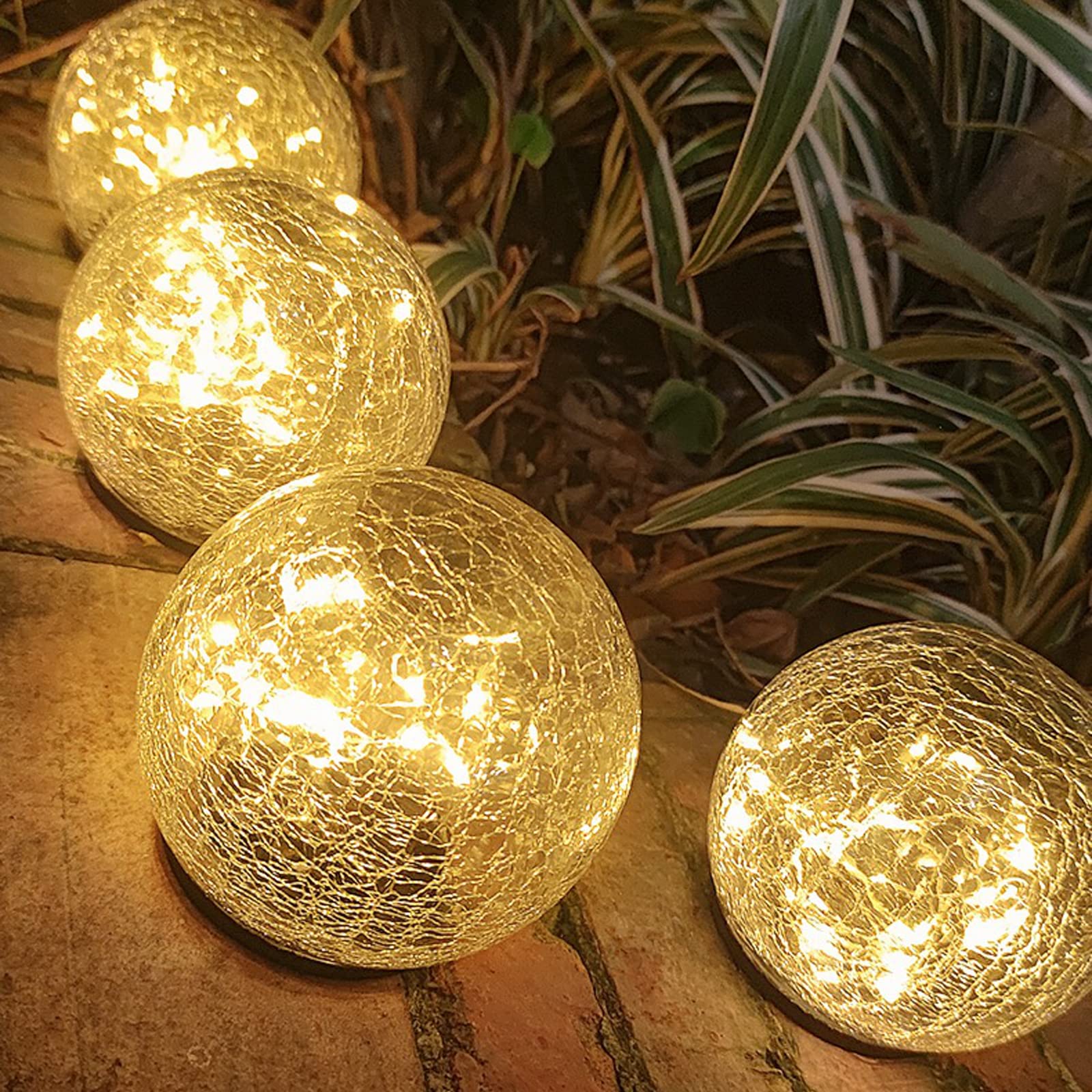 【Unique Design】:Solar Christmas Balls Outdoor is specially treated cracked glass ( not cracked, it is a decorative texture), strong and durable, Beautiful and waterproof, The reflection of the pattern creates a romantic atmosphere. Light Color: Warm White