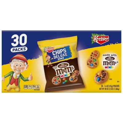 Each box contains 30 individual bags of Keebler Bite Size M&M’s Cookies. Take them with you to the park for a midday snack. Great for sharing, they are also a good choice for a birthday treat or snack at school events.