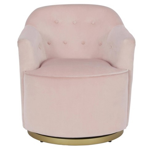 Upholstered in a plush, faux velvet fabric with a sturdy gold finished metal swivel base that offers 360-degree rotation