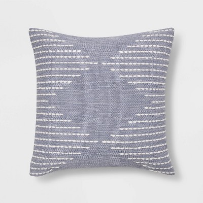 Add some geometric design to your indoor decor with the Modern Stitched Square Throw Pillow from Project 62™. This decorative pillow showcases a contrasting striped pattern on the textured top, which reverses to a coordinating solid surface to add depth and dimension to your bed, sofa or a chair. Featuring a 100% cotton exterior and generously filled interior, this square accent pillow provides plenty of cushioned comfort while you relax. Pair it with other embroidered and solid-color pillows for a coordinated and cohesive look, or mix and match with bright designs for additional flair.