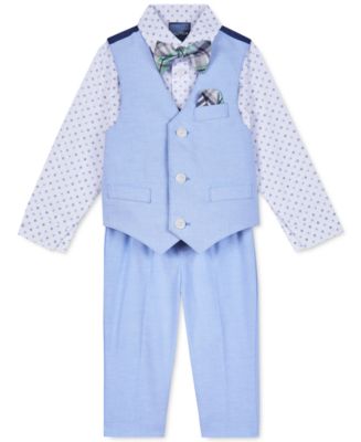 Sweet dressy-day style. Nautica keeps your little man looking dapper with this 4-piece shirt, vest, pants and bow tie set.