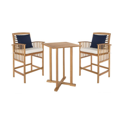 The hottest rooftop bar in palm springs inspired this 3 piece bar set. Crafted in a rich finish, its contemporary 39.8 inch table and sleek matching chairs with modern upholstery lend instant bistro style to any outdoor terrace or entertaining area.