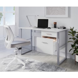 White computer desk offers a contemporary aesthetic.