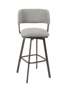 Pull up a seat, in style, with the Adler Adjustable Open Curve Back Upholstered Barstool by Silverwood. The modern lines of the sturdy metal frame are complemented by the curves of the open wrap back and squared seat, adding dimension to your entertainment space. The foam seat cushions are swivel capable and upholstered in a neutral fabric for a transitional, timeless look. The adjustable height allows you to customize the stool’s height to best suit your room. Use the Adler stool to add sharp style to a homework station, your kitchen island or rec room.