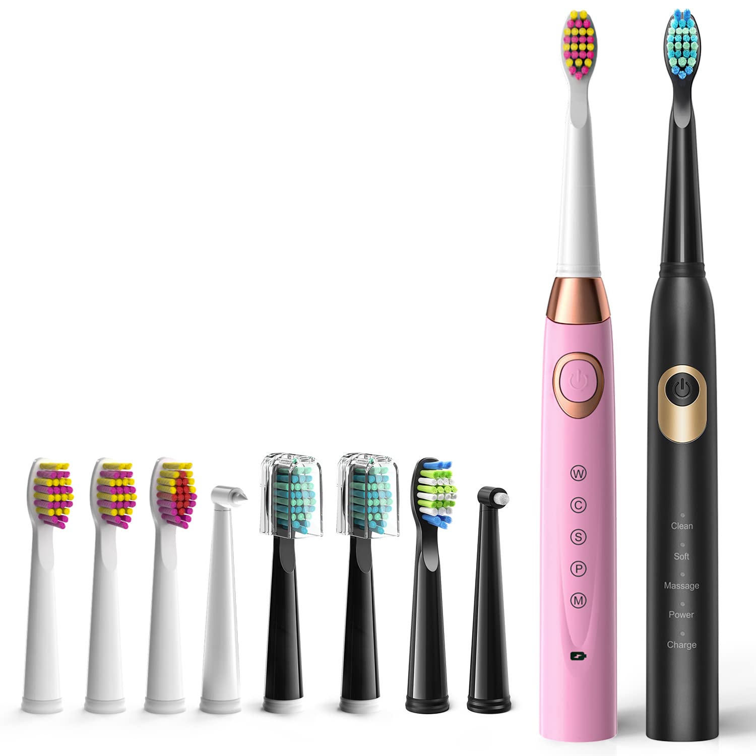 Extra 8 Brushing Heads with Dupont Nylon Bristles & 2 Pointy Picks – This economical sonic electric toothbrush set comes with 8 replacement heads, "W" waved bristles and slightly smaller heads to efficiently and easily clean harder to reach areas. The pointy pick is fantastic for cleaning between the teeth. Dupont Nylon bristles are optimal for giving you the best cleaning and they are soft for sensitive teeth and gums.