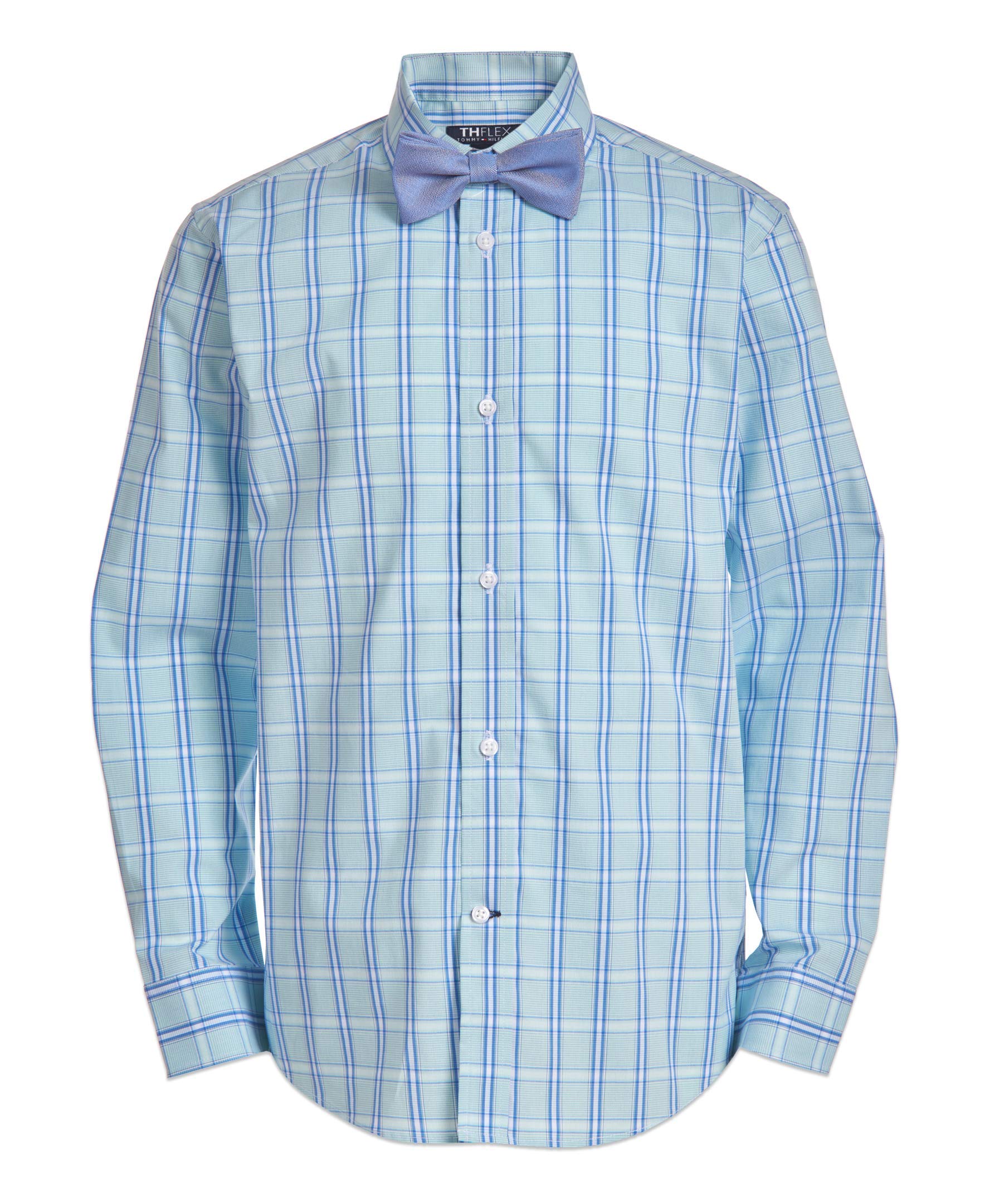 Features an elegant plaid design, natural stretch cotton, regular fit, modern Semi-spread collar, long sleeves, adjustable button cuffs and shirttail hem