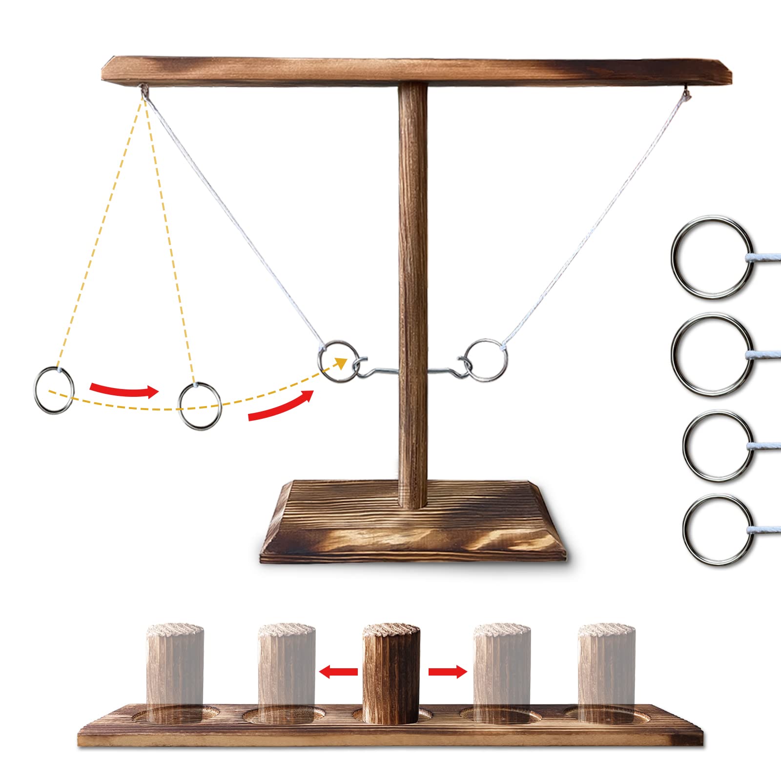 100% NATURAL SOLID WOODE, ENHANCED VERSION-Bigger and more stable.This is an upgraded ring toss game. In addition to the larger size and more stability, The faint smell of the natural wood makes human ease.we have also upgraded the difficulty. There are two large rings and two small rings. You can use different rings according to your age.