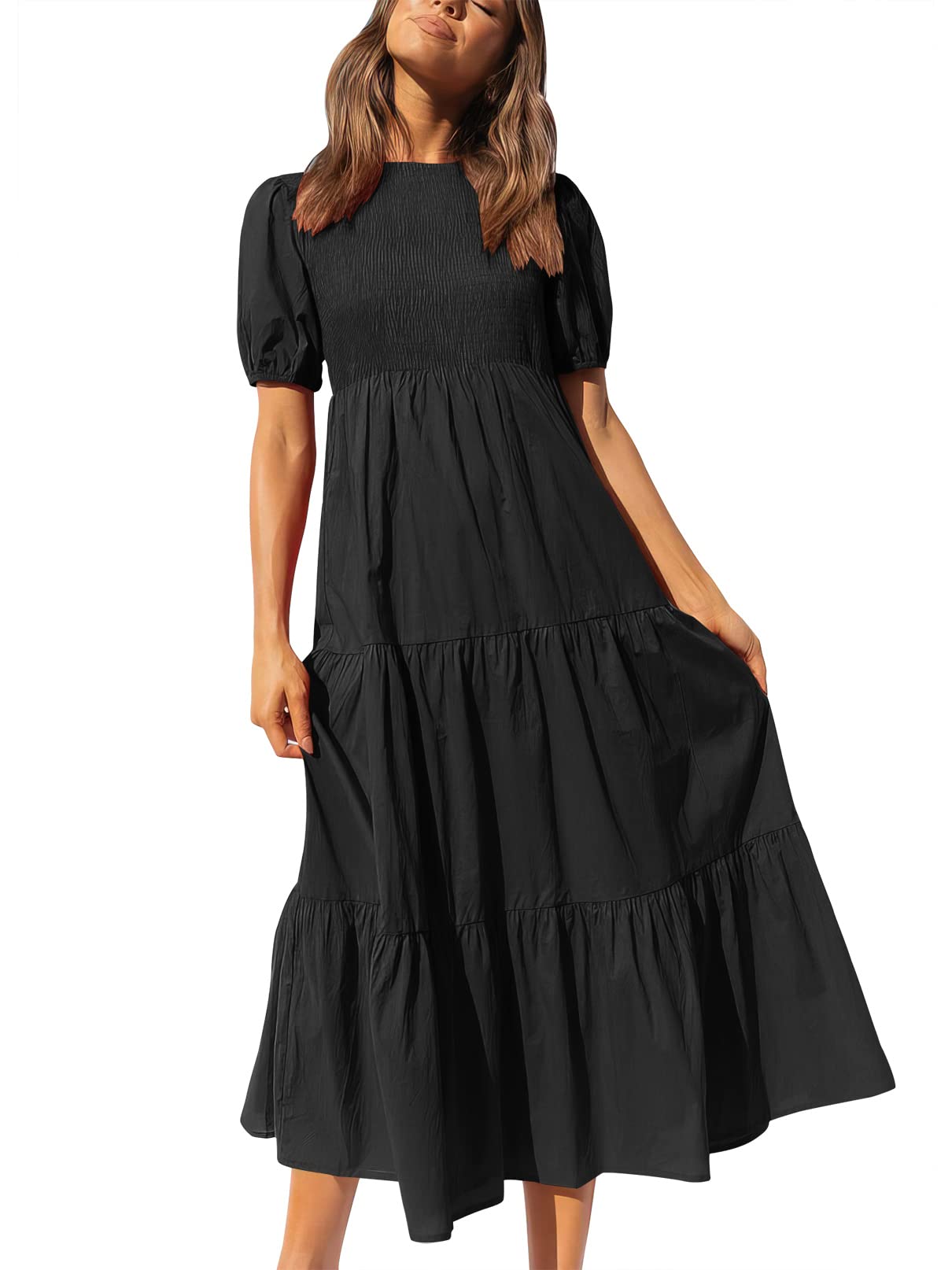 ♥Bohemian dress: shirred and stretchy bodice, perfect ankle length, the subtle tiered detailing to skirt styles this piece perfectly.