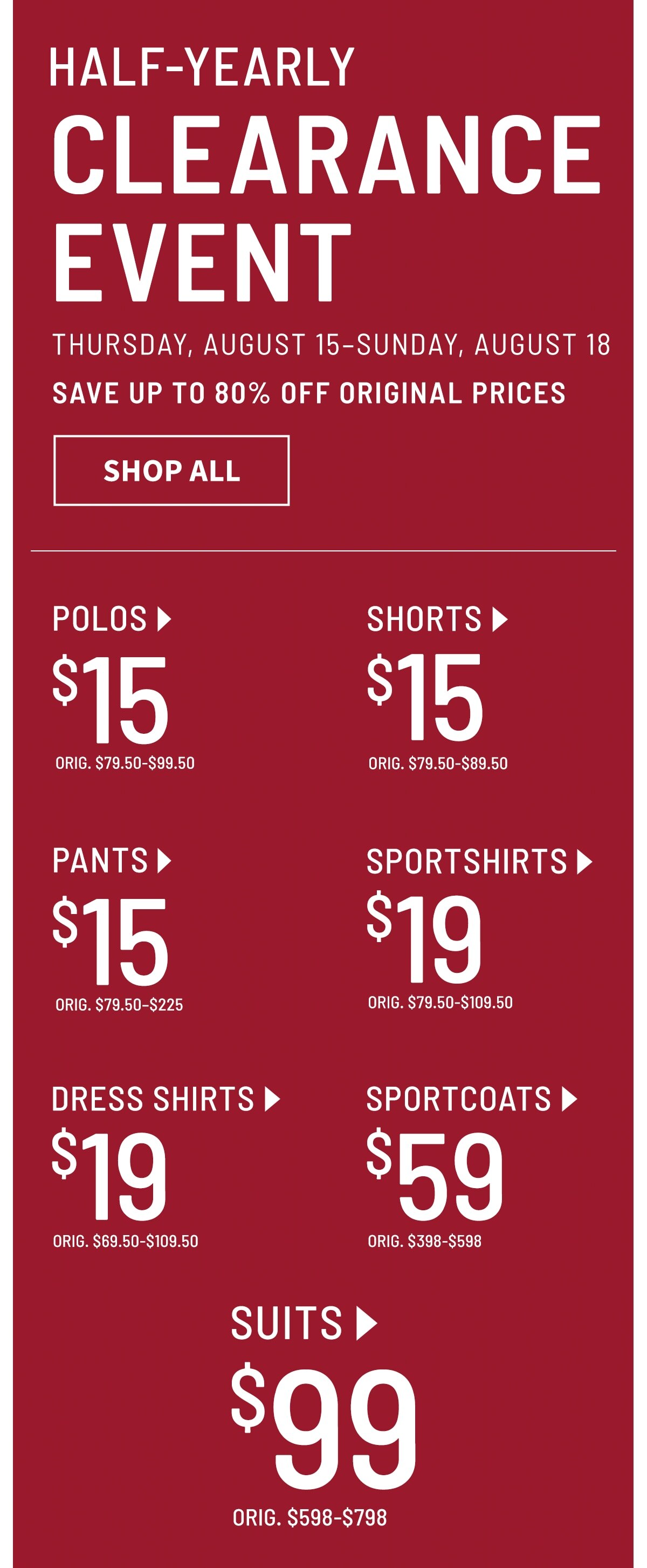 Order now: Jos. A. Bank Half-Yearly Clearance Event takes up to 80% off from josbank.com