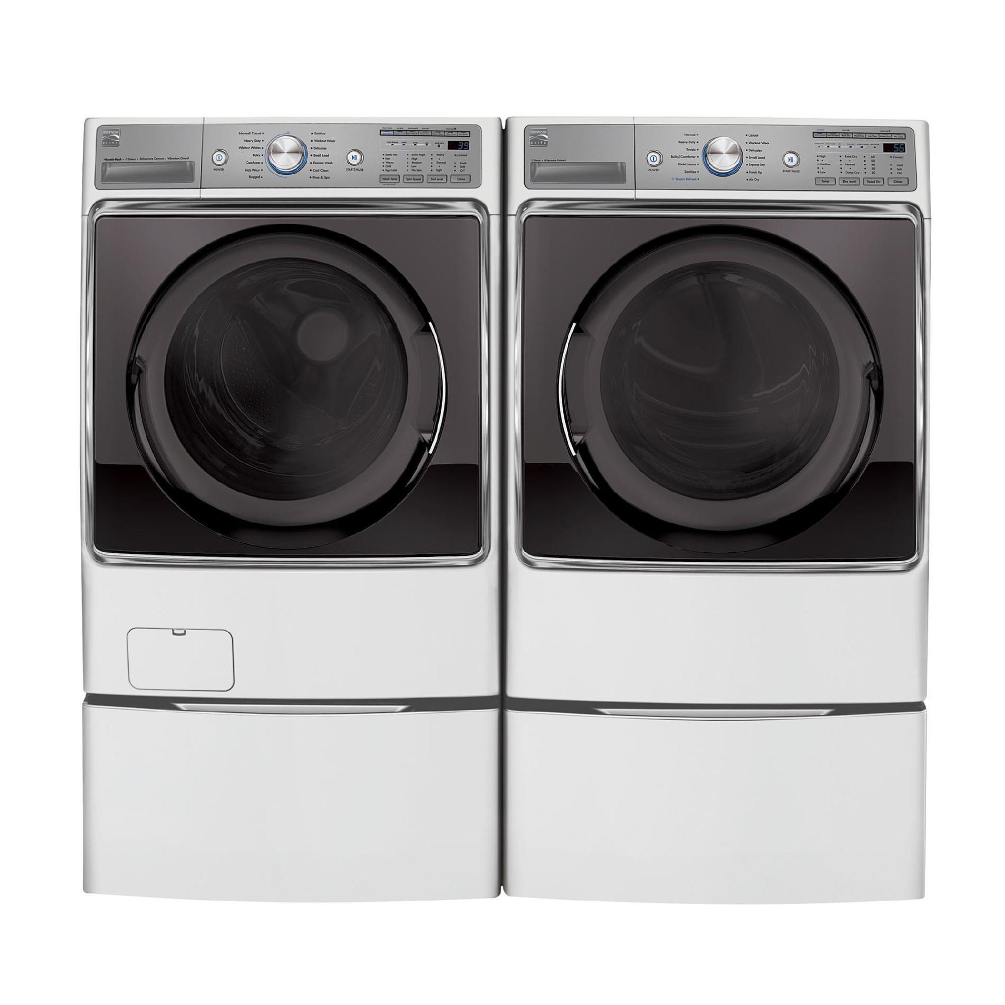 Get 2 FREE Pedestals when you buy this washer/dryer bundle. ($679.98 value!) Kenmore Elite 41072 non-smart 5.2 cu. ft. front-load washer & Kenmore Elite 91962 9.0 cu. ft. front control gas dryer with Accela Steam (white)