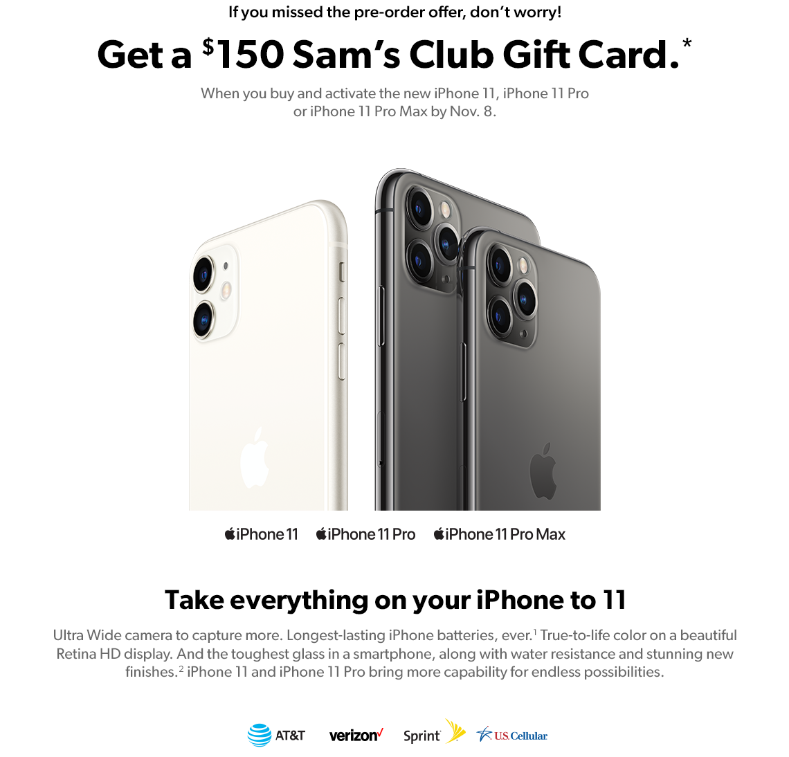 Order now: Sam’s $150 Giftcard for iPhone 11 from samsclub.com
